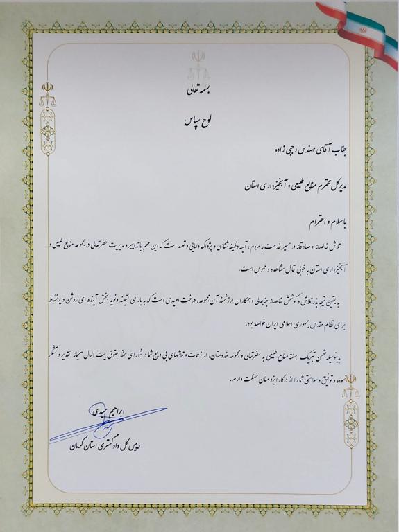 به گزارش پایگاه اطلاع رسانی اداره کل منابع طبیعی و آبخیزداری استان کرمان به مناسبت ششمین روز از هفته منابع طبیعی در جلسه حفظ حقوق بیت المال حجت الاسلام و المسلمین حمیدی رییس کل دادگستری استان کرمان با اهداء لوح سپاس از زحمات مهدی رجبی زاده مدیرکل منابع طبیعی و آبخیزداری استان کرمان تقدیر بعمل آورد.