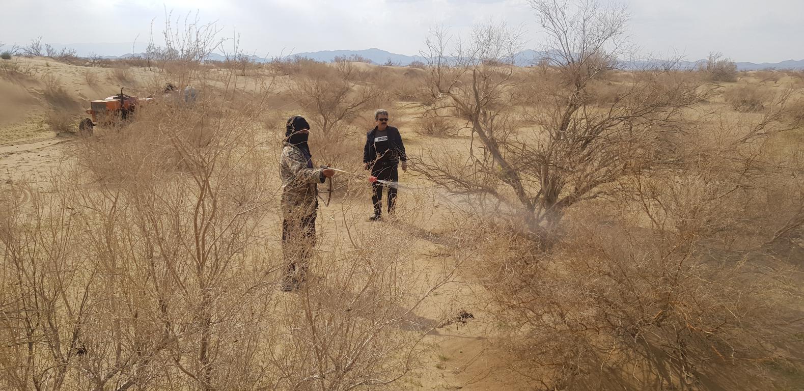 آغاز عملیات مبارزه با ملخهای کوهان دار در جلال آباد زرند